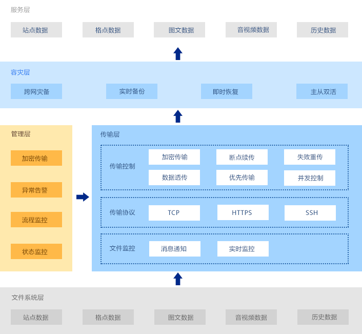 內置文件傳輸災備機制,徹底解決數據丟失隱患。